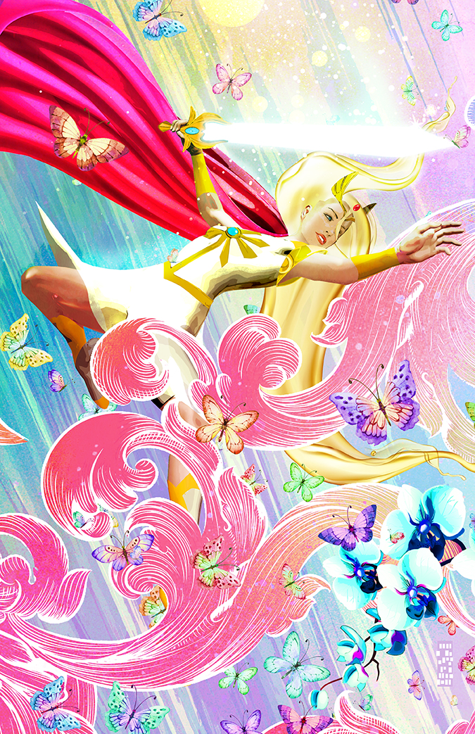 VERY LIMITED She-Ra 12"x18" Digital Art Print with iridescent foil accents on 100lbs gloss cover opus stock, signed. 11x17 image with a 1/2" white border.